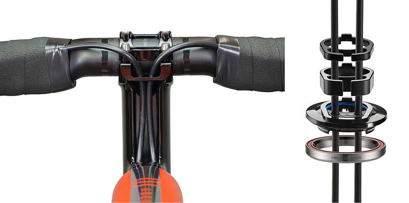 Dadurch können die Lenkerhöhe und die Vorbaulänge variiert werden, ohne Bremsleitungen abhängen und in der Folge neu entlüften zu müssen. Für lange Serviceintervalle sorgt die sorgsame Abdichtung des Systems.