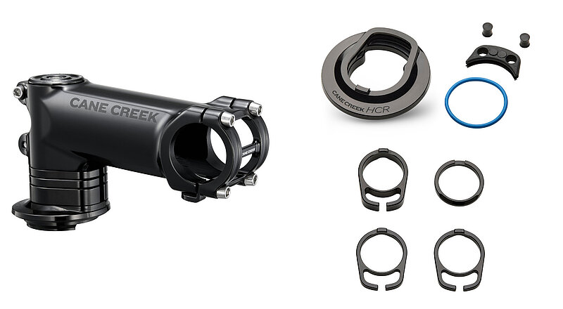Im Unterschied zu vielen anderen System auf dem Markt werden die Leitungen und Züge beim «HCR System» nicht durch den Vorbau und die Distanzscheiben des Vorbaus geführt: Stattdessen hat Cane Creek eine Aussparung in die Unterseite des Vorbaus integriert und bietet zudem passende Distanzscheiben aus Aluminium mit integrierter Führung für die Züge und Leitungen.