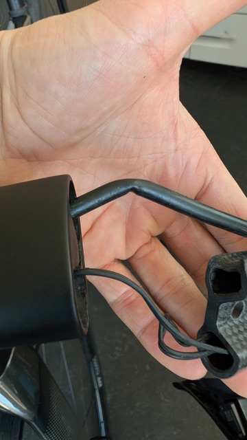 Der Grund war schnell gefunden: Die zu lang bemessene Bremsleitung wurde im Inneren des Lenkers geknickt – die Bremse blockierte.