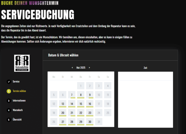 Die Idee für ein Terminbuchungstool im Bereich Suspension, welches detaillierte Preise sowie Termine zur Verfügung stellt, war bereits zu Beginn der Firmengründung entstanden.