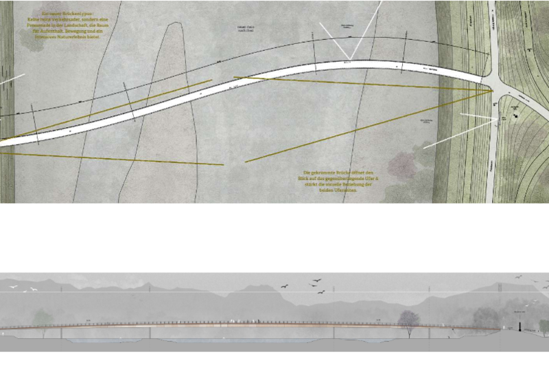Die Idee einer zusätzlichen Rheinquerung für Velofahrerinnen und Fussgänger besteht seit mehreren Jahren. Um eine qualitativ hochwertige Lösung zu finden, haben die Gemeinden Diepoldsau und Widnau im Herbst 2024 einen offenen Projektwettbewerb gestartet. Als Siegerin aus dem anonymen Wettbewerb ging im Mai 2025 das Projekt «Flaneur» hervor. Der Entwurf stammt von einem interdisziplinären Planungsteam und hat die Jury insbesondere durch die klare, zurückhaltende Form, die gute Einbindung in die Landschaft sowie die hohe Aufenthaltsqualität für Fuss- und Veloverkehr überzeugt