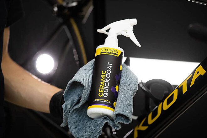 Ceramic Quick Coat ist eine anwenderfreundliche Sprühversiegelung für Fahrräder. Auf Siliciumdioxidbasis formuliert, bildet sie eine starke Bindung mit der Oberfläche und bietet bis zu 6 Monate Schmutzabweisung. Die Oberfläche fühlt sich nach der Anwendung glatt und gepflegt an. Ideal für alle modernen Fahrradmaterialien.