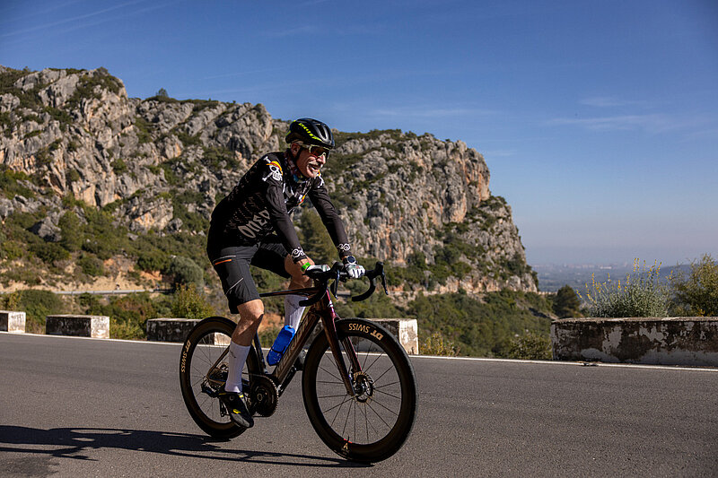 Diese ausgesprochen schmale Griffposition gepaart mit der Aero-Form des Oberlenkers reduziert den Luftwiderstand massiv. Dennoch fährt sich das neue «Reacto» nicht bretthart. Bis zu 32 Millimeter breite Reifen und die flexende, schlanke Aero-Sattelstütze sorgen für den nötigen Komfort. Auf den kurvenreichen und verkehrsarmen Strassen im Hinterland von Benicassim (Spanien) konnte das Setup beim Launch vollauf überzeugen.